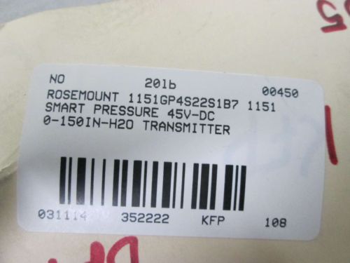 NEW ROSEMOUNT 1151GP5E22S1D6 PRESSURE 45V-DC 0-217.14IN-H2O TRANSMITTER D352273