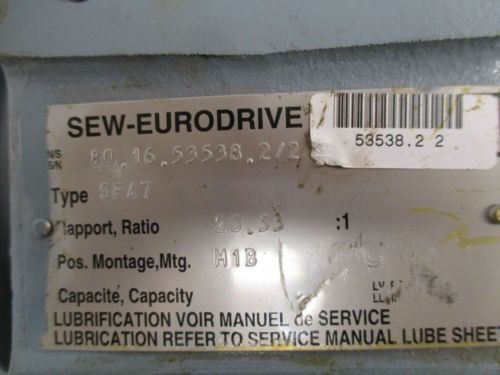SEW EURODRIVE SF37 0.75HP 266/460VAC 1700/250RPM 3PH AC GEAR 6.8:1 MOTOR B378924