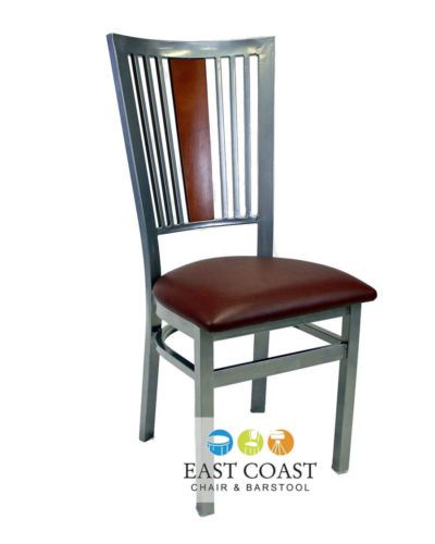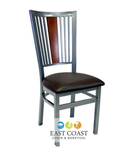 New Steel City Metal Restaurant Chair with Silver Frame & Brown Vinyl Seat
