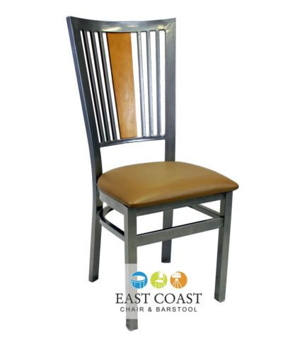 New Steel City Metal Restaurant Chair with Silver Frame & Tan Vinyl Seat