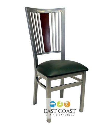 New Steel City Metal Restaurant Chair with Silver Frame & Green Vinyl Seat