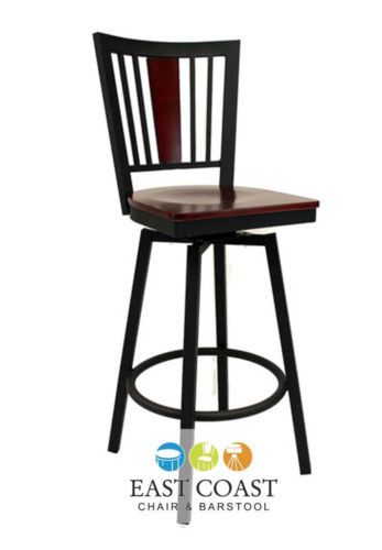 New Steel City Metal Swivel Bar Stool with Black Frame & Cherry Wood Seat