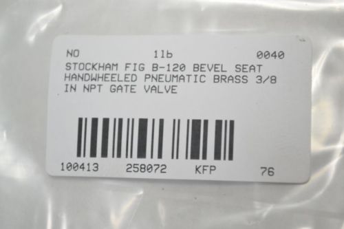 NEW STOCKHAM B-135 BEVEL SEAT HANDWHEELED BRASS 3/8 IN GATE VALVE B258078