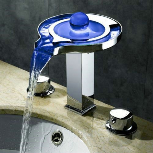 Bathroom LED tempered Waterfall vessel sink basin Mixer Tap faucet jhggr56