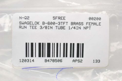 SWAGELOK B-600-3TFT BRASS FEMALE RUN TEE 3/8IN TUBE 1/4IN NPT FITTING B478513