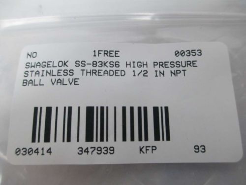 NEW SWAGELOK SS-83KS6 HIGH PRESSURE STAINLESS BALL VALVE D347944