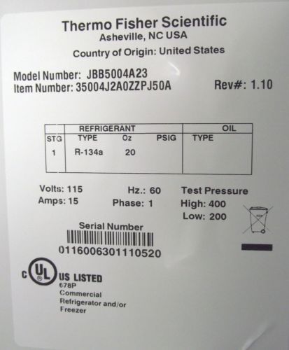 | Seller Notes | “This blood bank refrigerator is in brand-new, unused condition with original packing materials.” |
