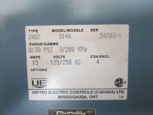 LOT 3 UE UNITED ELECTRIC J6X-222 PRESSURE SWITCH 0/20PSI 3/4PSI 230V B206338