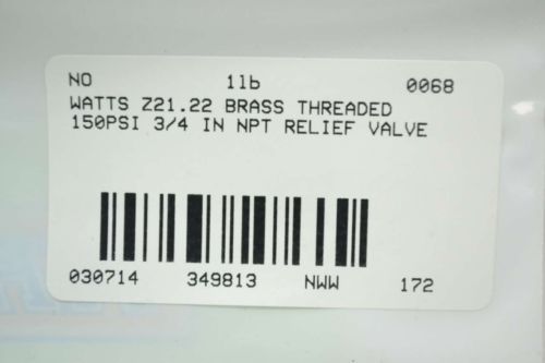 NEW WATTS Z21.22 BRASS THREADED 150PSI 3/4 IN NPT RELIEF VALVE B349792