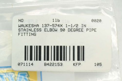 NEW WAUKESHA 137-574X 1-1/2 IN STAINLESS ELBOW 90 DEGREE PIPE FITTING B422150