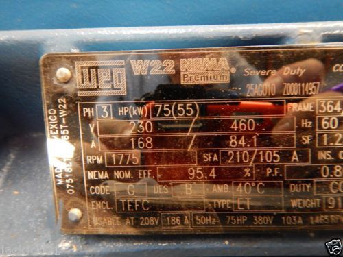 General Electric 100 hp motor electric 575 volt / 3 ph 99 amp / rebuilt motor