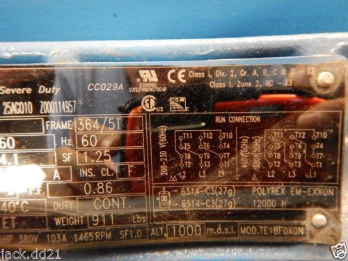 DAYTON MOTOR, 3PH, 25HP, 1765 RPM, 208-230/460V, Frame: 284T, Eff 93.6