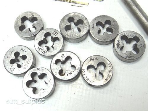 NICE LOT OF 9 HSS DIES 1/4" -18 TO 1" -8 WITH 3 WRENCHES RIDGID