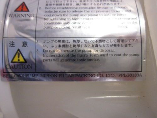 Nippon Pillar Packing Co PSE10MP1912 Bellows Pump with 30 day warranty