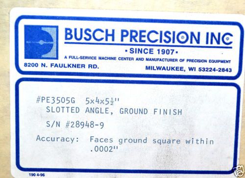 NOS Busch Precision USA 4.5"X4"X5" UNIVERSAL RIGHT ANGLE PLATE #PE2705G $755