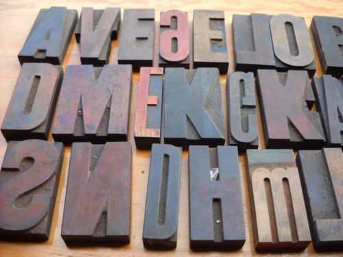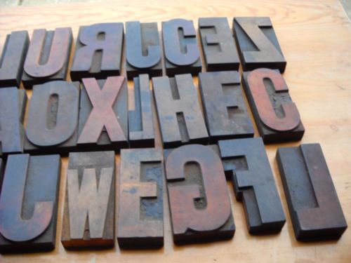 LOT 42 PIECES WOOD LETTERPRESS LETTERS 5" X 2 3/4" TO 6 3/4" X 5 1/4"