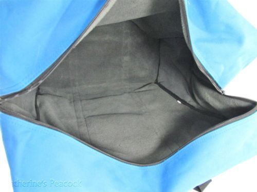 | “Two slits in front abdomen. Outer plastic has minimal to light wear, soiling and tears at edges. Carry bag has light to medium staining” |