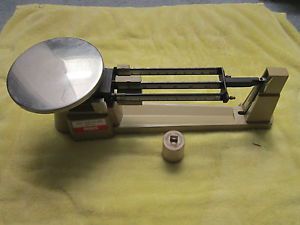 OHAUS VINTAGE BEAM SCALE WITH STAINLESS STEEL TRAY NICE!