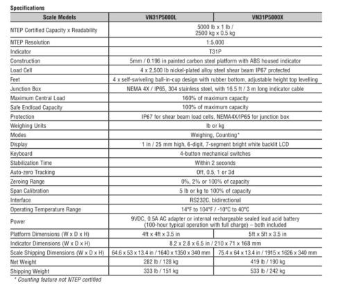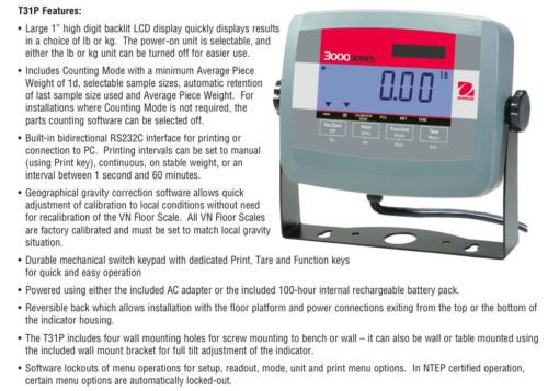 OHAUS VX32XW10000X STANDARD WASHDOWN FLOOR SCALE 10000lb 2lb 4500kg 1kg 2YWRRNTY