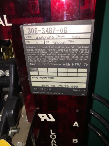 New Cummins OTPCA-4067121 PowerCommand Transfer Switch 125 amps 480V 3 Poles
