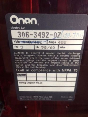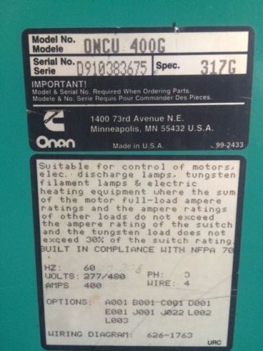 ONAN CUMMINS BT 1200 Bypass Generator Automatic Transfer Switch ATS Model BT1200