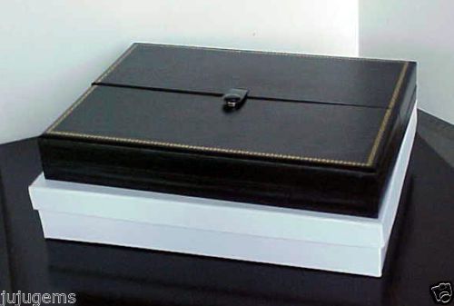 Three 8 1/4" BLACK LEATHERETTE Combination MULTI-USE Jewelry Storage Gift Boxes