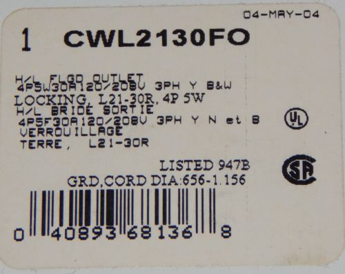 (4063) ) Russellstoll Receptacle F27194 60A 600VAC 250 VDC