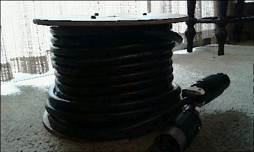 This heat lamp works great! It has a sticker from Columbia Food Service Company, Oklahoma City, OK Model NHL8185GB21Date 6/00250 Watt Cord reads Water resistant SJOOW CSA (-40C) FT-2 P-7K-123033 MSHA Made in USA 300VCAROL 14/3 90°C (UL) It is gold toned, I believe it is made of aluminum. The flex neck is about 24" long & coated in plastic.