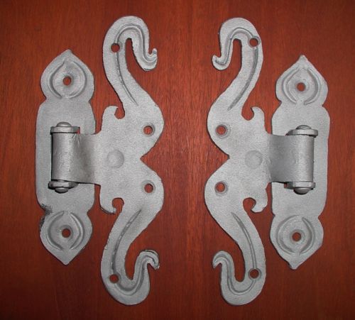 Pair of 19"Pa.Dutch Style Ram Horn Strap Hinges, by Blacksmiths