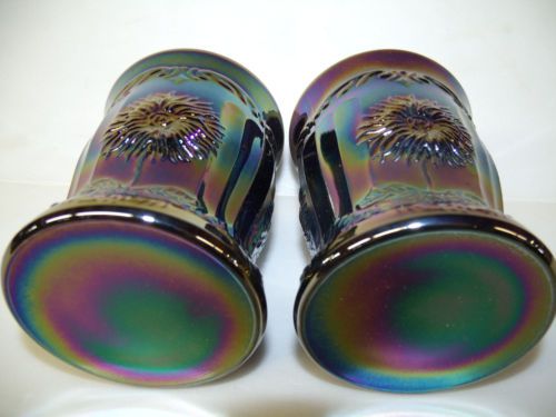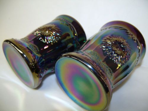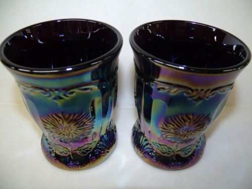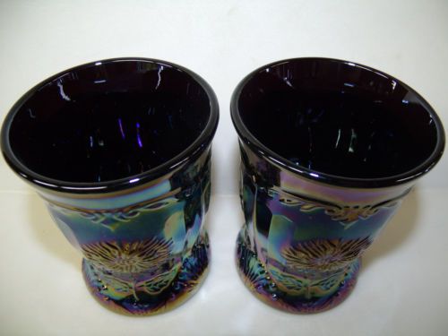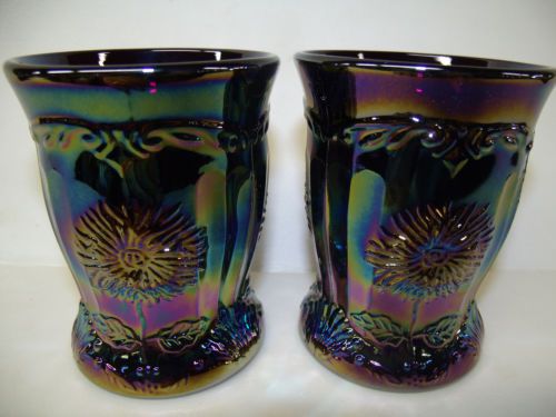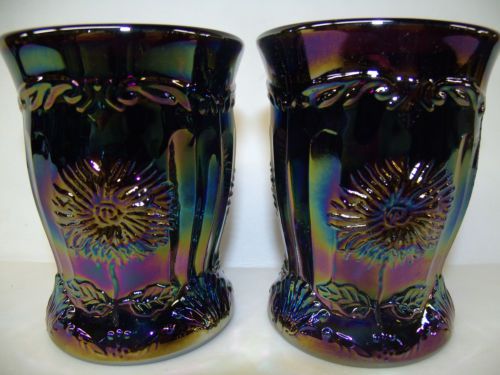 pair of marigold carnival glass maple leaf tumblers cups goblet iridescent amber