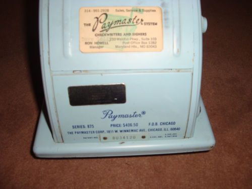 Vintage Paymaster Series S 1000 Check Writer Embosser w Key Aqua Turquoise