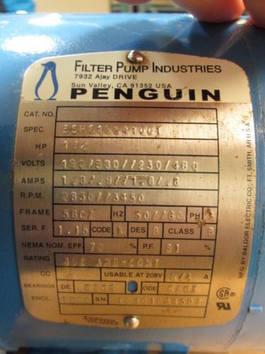 New Penguin P-340-3103-T Titanium Shaft Pump Motor 230/460VAC 2.6/1.3A 9" Shaft