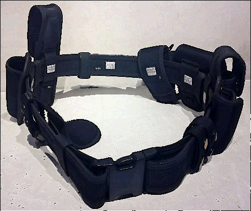 Up for bid is a used but serviceable Police/Security nylon Duty Rig. NOTE: ALL HOLSTERS, POUCHES AND CASES ARE EMPTY AND CONTAIN NO WEAPONS. INCLUDED: HWC 2" belt size Large.