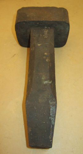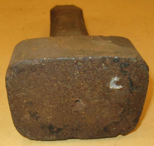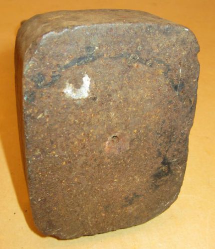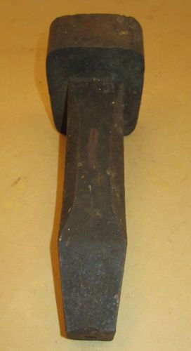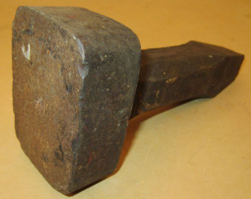 “This unmarked extra heavy square head stake is in good condition but there are some nicks on the flat edges. This heavy square head stake is 3 1/2" X 2 3/4" and the length of the stake is 8". The white spot on the face looks like an old paint spot and there is a small centering hole in its center.” |