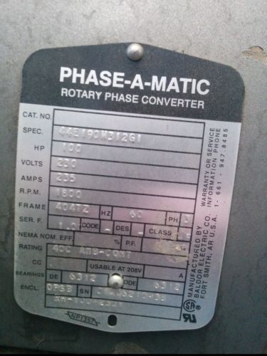 Kay Industries MA-0 Type Phase Converter & Motor 3hp 3ph & Disconnect