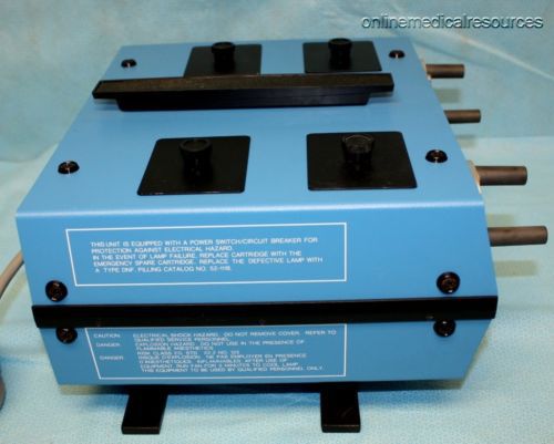 | “We acquired these units from a medical auction and they are NOS (new old stock) in the original box. As they are older stock there may be some light scratches / surface rust on some of the screws. The unit powers-up and functions properly with all (4) bulbs and both cooling fans operate quietly.” |