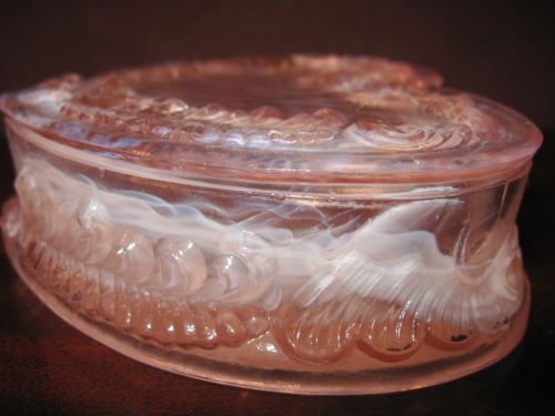pink white milk slag glass salt cellar celt duck on nest basket dip swan opaque