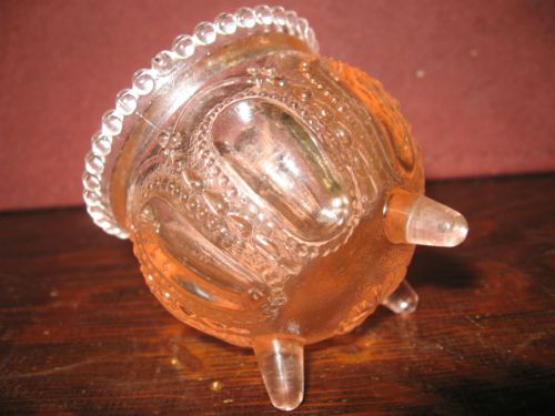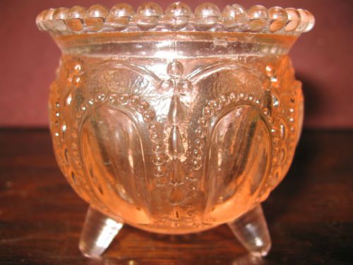 Pink rose glass serving honey pot bee hive pattern jar dish boyd cranberry bowl