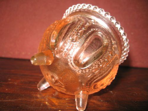pink carnival glass scottie dog salt cellar / celt on nest basket dip iridescent