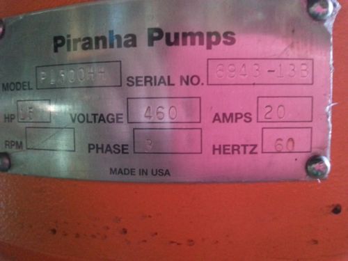 BARRETT 2X2.5 7L PUMP 3500 RPM 15 HP W/US MOTOR 3480 RPM, 208-230/460 V (NEW)