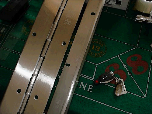 Aluminum Display Case #1170 End Load This case opens on the short side. Dimensions are 34 inches long, 22 inches wide, and 3 1/4 inches deep 1) Full length continuous hinge for added strength 2) Solid masonite bottom 3) Built in support arms 4) Tamper proof keyed cylinder lock