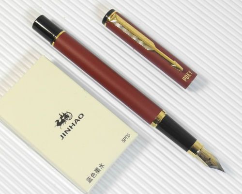 POKY F 88 Fountain Pen Wine RED barrel free 5 Jinhao cartridges BLUE ink