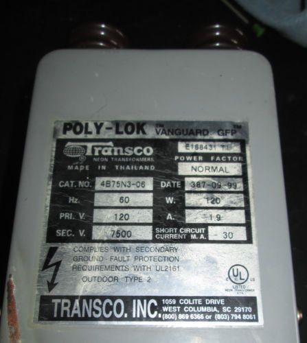 Outdoor Non Weatherproof Gas Tube Transformer Model #FG-4407 6,000 Volts 60HZ