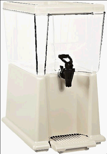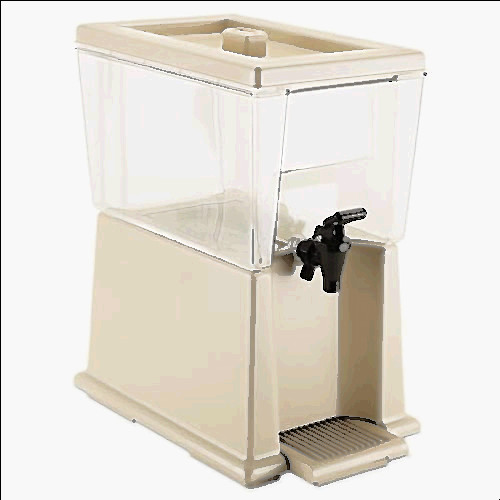 Beverage DispenserCal-Mil Straight-edged stainless steel beverage dispenser compliments any buffet setting Made from a stainless steel base and polycarbonate tank Includes drip tray Replace ice column with optional infusion chamber for infused dispensing Dimensions: 7 1/2" W x 9 1/2" D x 23 1/2" H