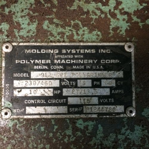 Polymer 11165PL Plastics Granulator Grinder 10 HP w/Controls 16"Wx11"T Throat