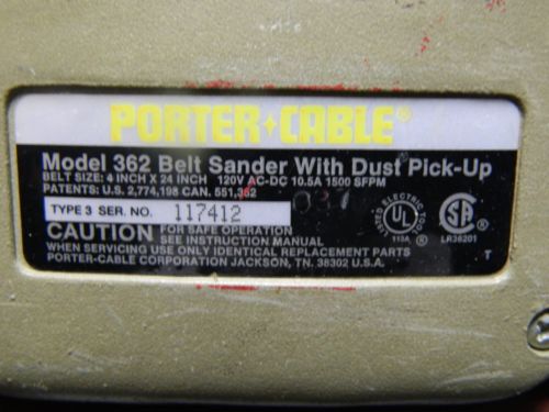 PORTER CABLE 4" X 24" WHIPER SERIES BELT SANDER #362 + (4) NEW SANIDING BELTS