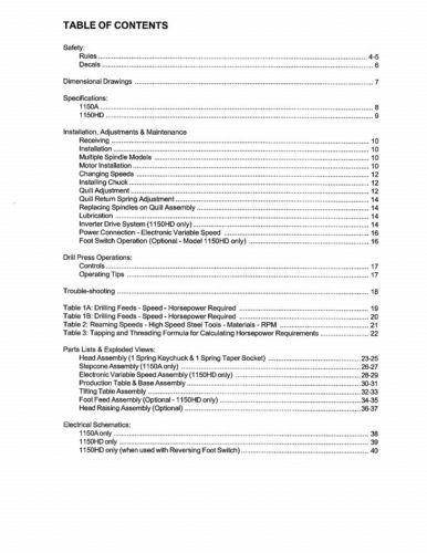 Powermatic Model 1150A Drill Press Operating Instruction & Parts Manual *292