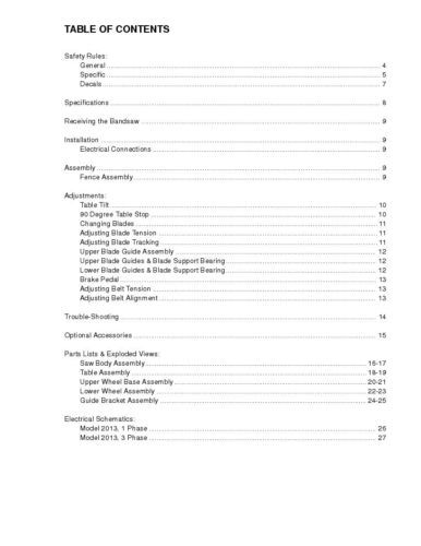 Powermatic Model PWBS14 14" Woodcutting Band Saw Instruction & Parts Manual *298