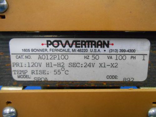 Powertran Transformer A012P100 VA 100 PH 1 120 H1-H2 Sec 24V x1-x2 50/60 Hz 890