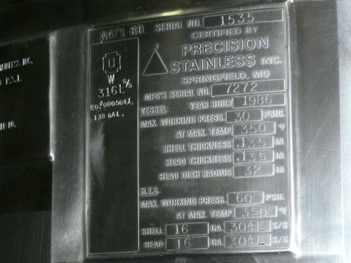 40 GALLON STAINLESS METALS RECEIVER RATED FOR PRESSURE